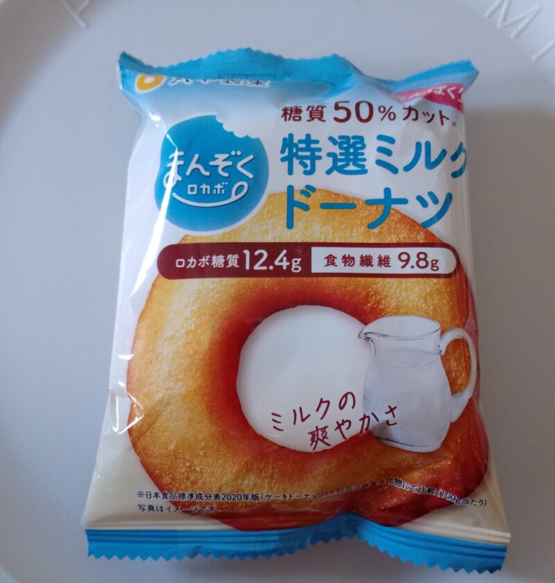 【商品名】丸中製菓 満足ロカボ 糖質50パーセントカット 特選ミルクドーナツ 【基本情報】・糖質:14.5g・ …